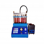Стенд для проверки и промывки 6 инжекторов в ультразвуковой ванне. Автоматический слив тестирующей жидкости. Работает от сжатого воздуха. Имитация работы форсунок происходит с помощью встроенного электронного блока управления форсунками. В комплект поставки входит ультразвуковая ванна объемом 2,0 литра с подогревом и мощностью генератора 60 ВТ.