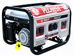 Мощность 2,5 кВт. Напряжение 220В. Применяется для резервного, сезонного или аварийного потребления. Генератор оснащен поршневым бензиновым четырехтактным двигателем внутреннего сгорания (с возможностью работы на газе). Генератор имеет пусковой стартер, а так же элементы управления и безопасности. Собственный запас бензина позволяет ему не останавливаться на протяжении почти 8 часов. Тип стартера: Ручной и электрический.