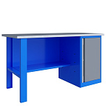 Однотумбовый. Допустимая нагрузка на столешницу 750 кг. Опорные элементы выполнены сварными из холоднокатаной стали. Для выполнения сборочных, ремонтных, слесарных, монтажных и других видов работ на производстве, в сервисных центрах, мастерских, гаражах, а также для обучения технологии в учебных заведениях. Комплектуется полкой-стенкой, расположенной под столешницей для удобного размещения габаритного инструмента и оснастки. Размеры верстака: 855x1596x696 мм. Вес: 68 кг. Поставляется в 4 комплектациях на выбор.