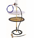 Нагнетатель предназначен для раздачи густой смазки из бочек объемом 190 л. Состоит из 2-х независимых и раздельных насосных систем, что предотвращает попадание отработанной влаги компрессора в емкость с перекачиваемым маслом. Длина шланга: 6 м. Давление смазки: 180-405 бар. Коэффициент передачи давления: 5:1. Производительность: 30 см³/с. Длина раздаточного шланга: 305 см. Вес: 15,5 кг.