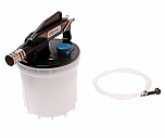 Емкость с тормозной жидкостью подвешивается с помощью магнитного держателя с крюком. Таким образом, нет необходимости прилаживать приспособление на капоте/двигателе. Подающий шланг выполнен из силикона. Габаритные размеры: 360/125/110 мм.