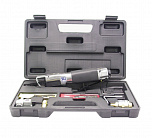 Пробойник для соединения листовых деталей, например при кузовных работах, а так же для создания кромки на листах. Диаметр отверстий: 5 мм. Максимальная толщина пробиваемого металла: 2 мм. Рабочее давление: 90 psi. Размер воздушного штуцера: 1/4"РТ. Длина: 250 мм. Вес: 1,28 кг.
