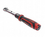 Ключ динамометрический с цифровой индикацией. Храповый механизм на 72 зуба, угол поворота 5'. Посадочный квадрат: 1/2". Диапазон усилий затяжки: 17-340 Н·м. Длина 666 мм. Цифровое считывание значения крутящего момента с функцией запоминания на 30 ячеек памяти. Жидкокристаллический экран с подсветкой. Мигание светодиода и звуковой сигнал. Если крутящий момент достигает 90% от предустановленного значения включается вибрационный сигнал.
