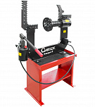 Для правки сложных ремонтов всех видов, в том числе «восьмерок», спиц (от 22-х дюймов, ремонт с мобильным кронштейном). Рама допускает нагрузку до 12 тонн. Вал из стали особой прочности. Станок оснащен специальными болтами, усиленной планшайбой и электроприводом вращения вала, который облегчает зоны правки и качество работ. Конструкция гидроцилиндра фиксирует его в любом положении так, что правка производится одной рукой, без удержания гидроцилиндра на весу.