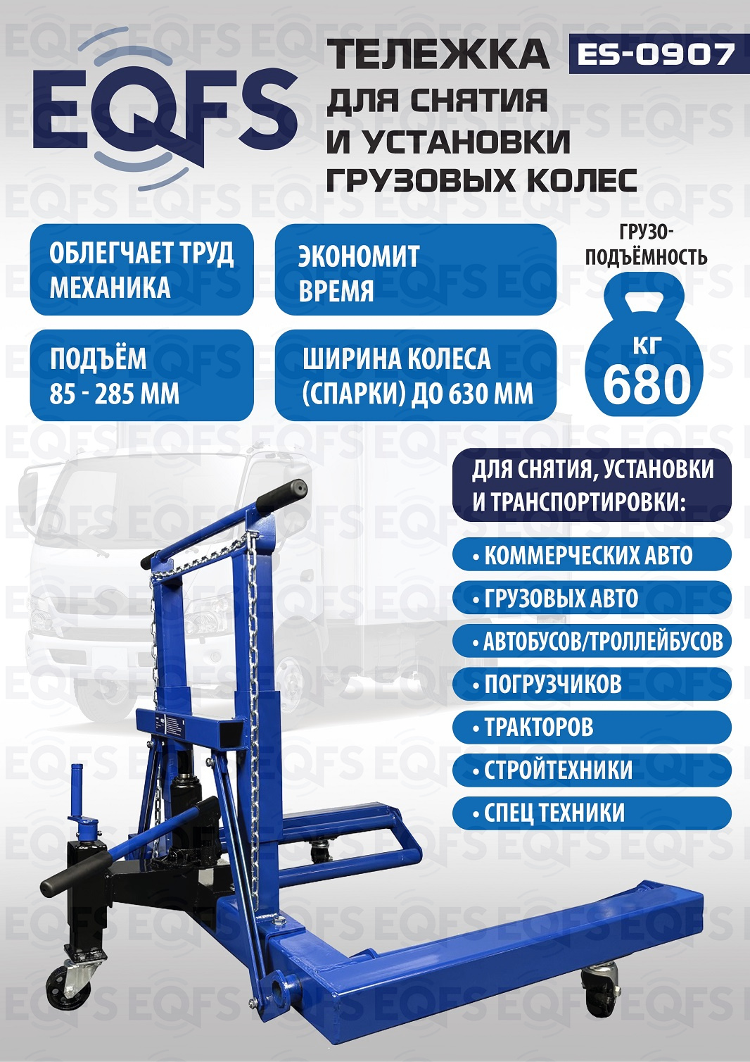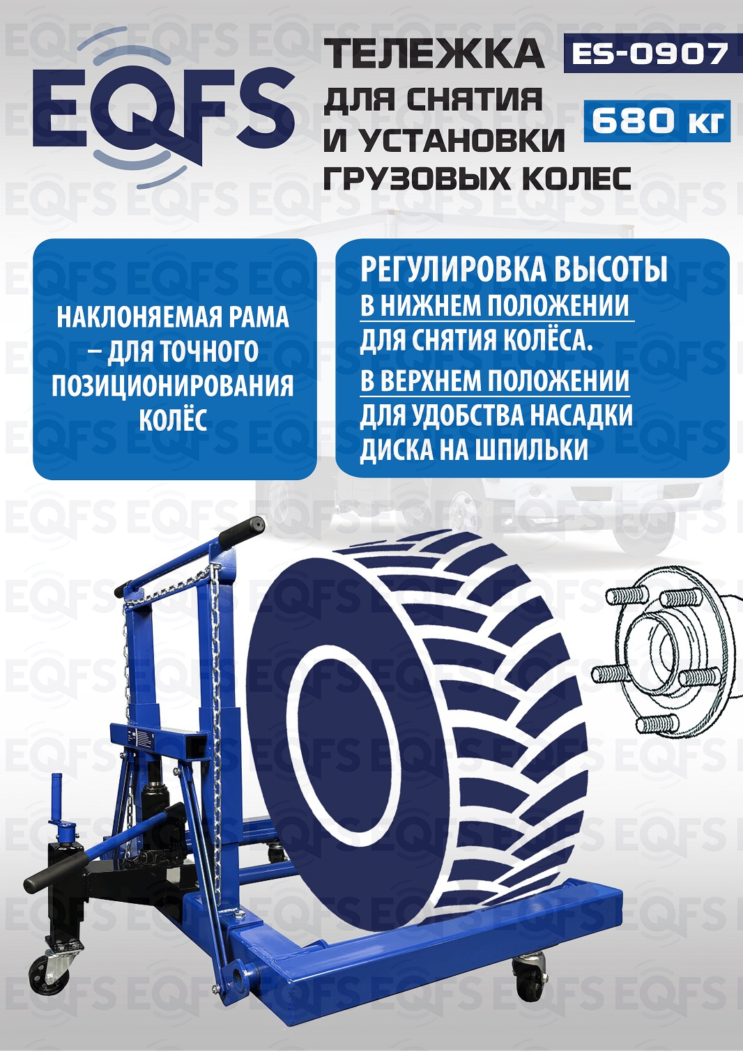 Технические особенности ES-0907 Тележка для снятия колес:
