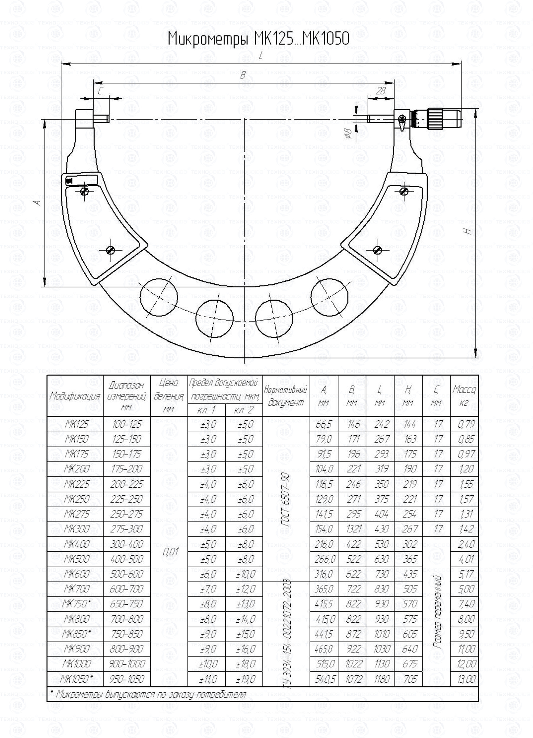Цена деления 0,01 мм. Диапазон измерения от 400-500 мм. Для измерения наружных размеров изделий. Измерительные поверхности микрометра оснащены твердым сплавом. Микрометры укомплектованы установочная мера 2 шт. Класса точности 1. ГОСТ 6507-90. Поставляется в двух вариантах с поверкой и без поверки!