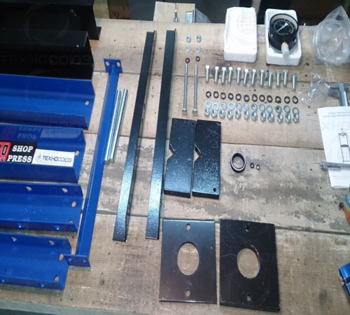 Усилие 10 тонн, манометр в комплекте. Передвижная каретка – рабочий гидроцилиндр может перемещаться по ширине пресса.