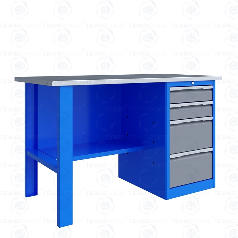 Тумба верстака - сварная. Ящики в тумбе устанавливаются на шариковых телескопических направляющих полного выдвижения. В тумбе P4 установлено два малых и два больших ящика. Внутренние размеры малых ящиков (ВхШхГ), не более: 103 х 397 х 520 мм. Внутренние размеры больших ящиков (ВхШхГ), не более: 222 х 397 х 520 мм. Тумбы с ящиками снабжены общим центральным замком с поворотом ригеля 180 градусов и подпружиненной тягой. В комплекте два ключа.